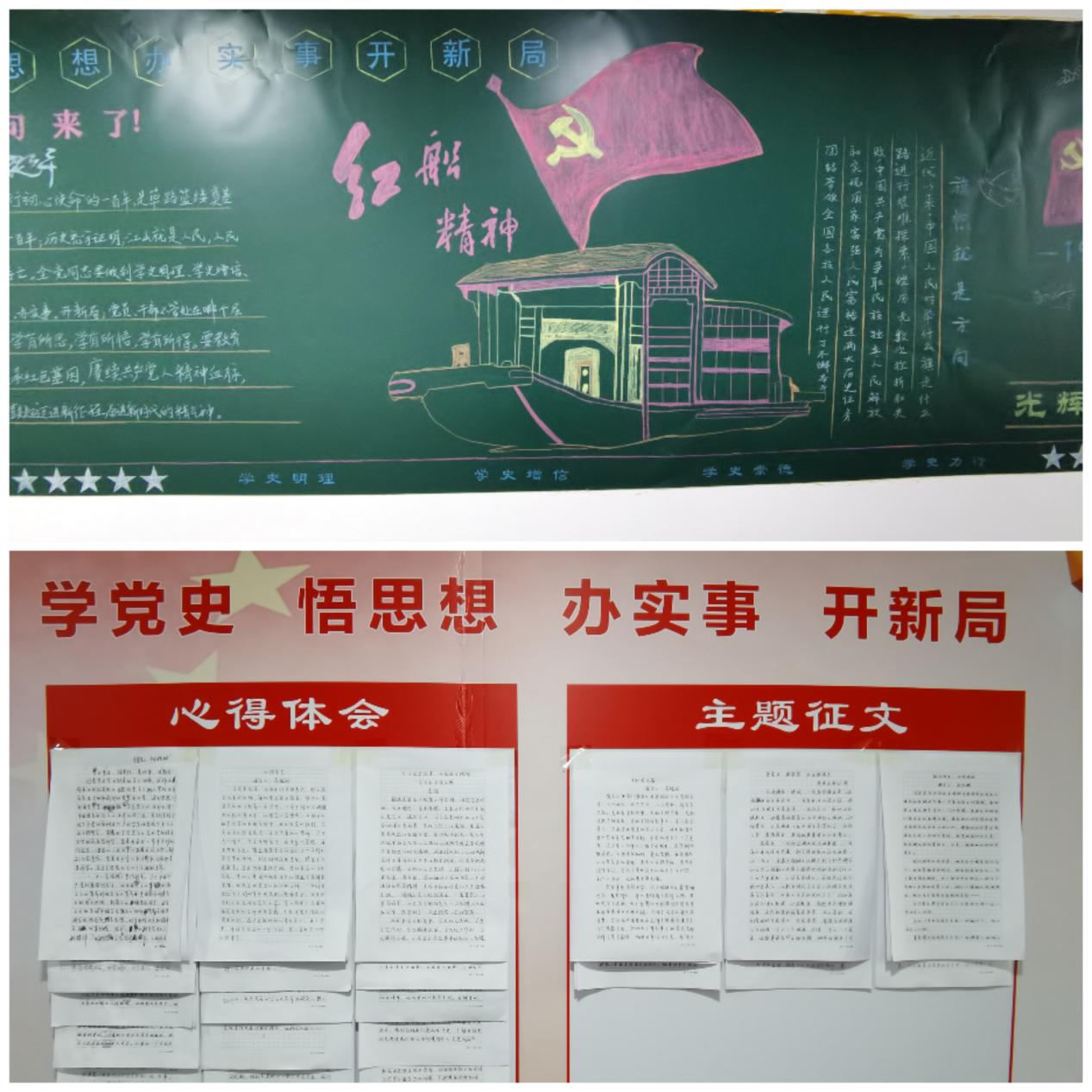拓展内容,全方位深化党史学习。全体党员通过自学、集中学、支委成员带头学等方式学习《中国共产党简史》《论中国共产党历史》《习近平新时代中国特色社会主义思想学习问答》《毛泽东 邓小平 江泽民 胡锦涛关于中国共产党历史论述摘编》等党史书籍,推动“党史”理论学习往深里走、往心里走、往实里走;将个人感悟与党的历史故事相结合,创办了读书心得、学习征文、手抄报展示长廊,形成了学习的浓浓氛围。