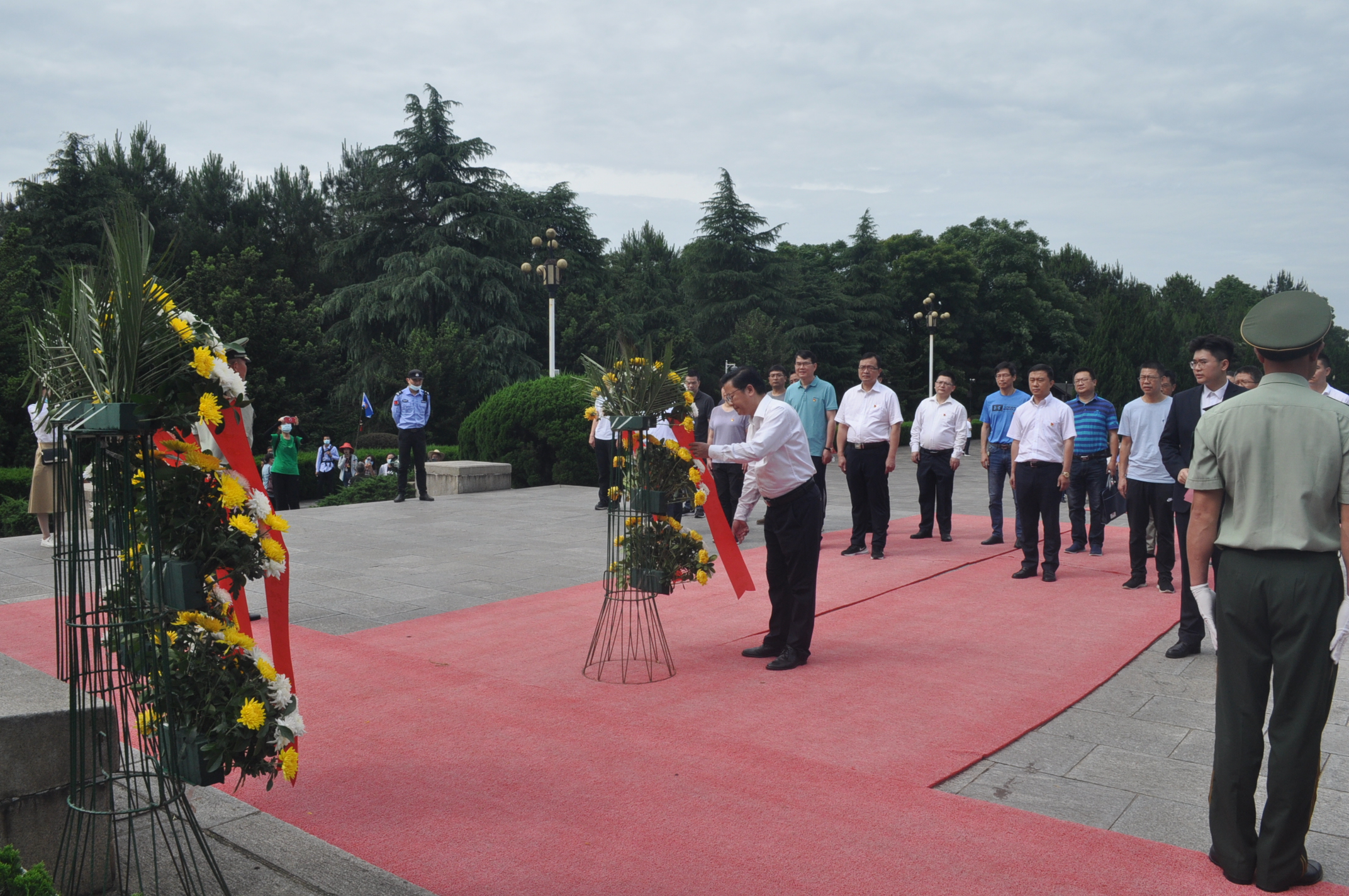 在刘少奇同志铜像广场,党员们向刘少奇同志铜像行鞠躬礼、敬献花篮,表达对刘少奇同志的缅怀之情。
