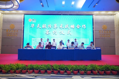 7月20日下午,集团控股子公司华天酒店集团股份有限公司(以下简称“华天股份”)隆重举行“华天股份集采战略合作签约仪式”,首批18家湖南本土“名特优”品牌企业与华天股份正式签订大宗物资集团采购合作协议。华天股份此举旨在通过集中采购湖南“名特优”产品,在提升服务品质的前提下,内控酒店运营成本,外推湖南“名特优”产品,实现共船出海、抱团发展。