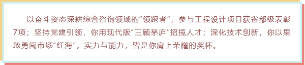 “成功的花,人们只惊慕她现时的明艳!然而当初它的芽儿,浸透了奋斗的泪泉,洒遍了牺牲的血雨”,这是他最喜欢的一句诗。在咨询的道路上,他不断更新知识结构,努力克服“知识恐慌”,苦练内功,用自己的实战业绩赢得了市场、也赢得了业主的认可,成为公司综合咨询领域的技术创新领军人物。