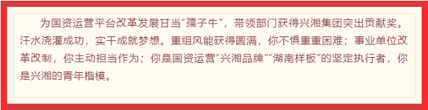 加入兴湘以来,戴志利亲历了集团改组组建为省属国有资本运营公司的全过程,参与了平台从组建到完善、到提升的多个重要阶段。先后主笔或负责起草了《集团建设省属国有资本运营平台实施意见》《集团建设国有资本运营平台三年行动计划》《集团“十四五”发展战略规划》等一系列框架性文件,为平台建设提供了智力支持。对于这些,他却笑称:“我只是一个不算合格的打字员,这都是集团党委的谋划,都是集团领导的思想,都是各单位各部门的智慧。”