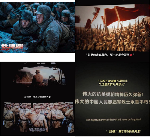 冰雪虽冻住了战士们的躯体,却封不住他们不朽的军魂;炮火虽能摧毁战士们的肉体,却冲不垮他们坚定的意志和信念。电影《长津湖》以抗美援朝第二次战役中发生在长津湖地区的一场战役为原型,通过中国人民志愿军第9兵团某部穿插七连参加长津湖战役为背景,以真实宏大的场景铺陈出抗美援朝战争中长津湖战役的艰苦卓绝与残酷惨烈,生动再现了中国人民志愿军勇往直前视死如归的峥嵘岁月,诠释了伟大的抗美援朝精神。电影中悲壮残酷的战争场景,坚不可摧的信仰情怀,和对党无限忠诚的革命精神深深打动了所有观影人员。