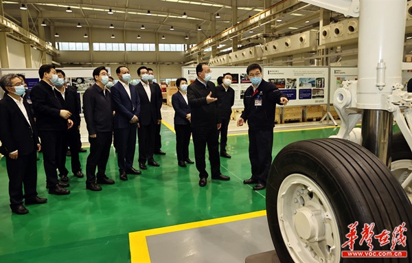 (毛伟明在长沙鑫航机轮刹车有限公司调研。)