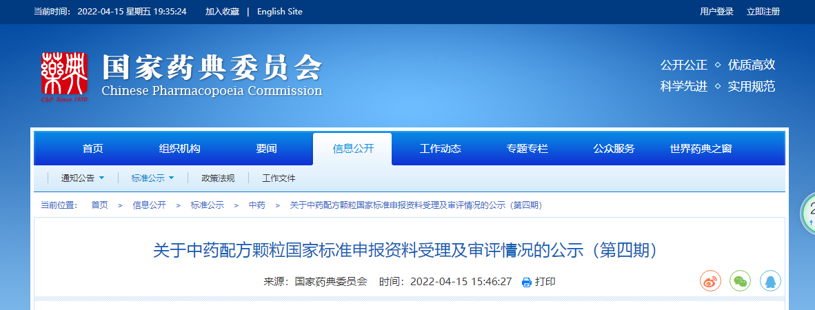 4月15日,国家药典委员会《关于中药配方颗粒国家标准申报资料受理及审评情况的公示(第四期)》公告,春光九汇提交的炒赤芍(芍药)(受理序号PFKL-SL2021089-2)、薤白(小根蒜)(PFKL-SL2021107-3)、地榆炭(地榆)(PFKL-SL2021112-3)三个配方颗粒品种进入国家药典委员会中药配方颗粒第三期同品种(32个品种)国家标准申报受理阶段并公示,即将进入初审阶段。