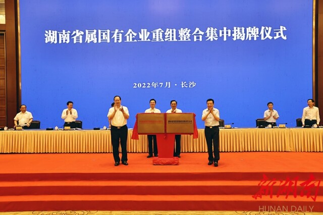 (7月20日上午,湖南举行省属国有企业重组整合集中揭牌仪式,省委副书记、省长毛伟明出席并讲话。)