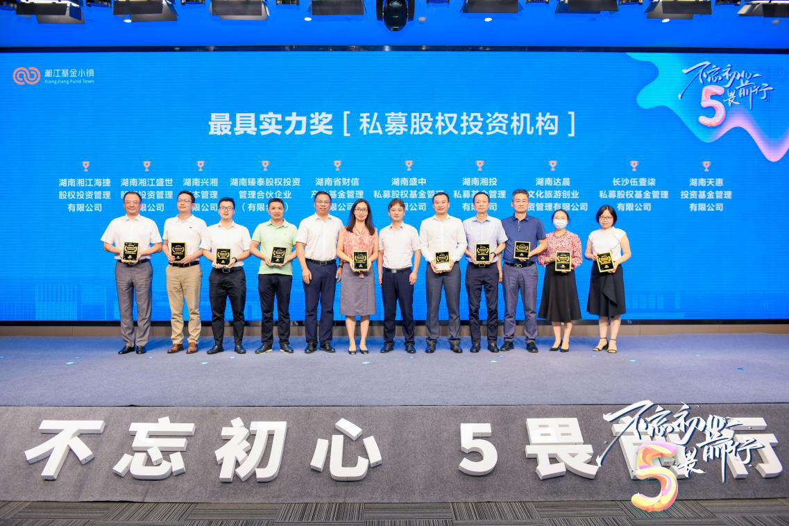 7月26日,湘江基金小镇成功举办“不忘初心,5畏前行”五周年庆典。兴湘资本获湘江基金小镇2021-2022年“最具实力奖(私募股权投资机构)”和“最佳合作伙伴”,成为唯一同时斩获两项殊荣的国资基金公司。