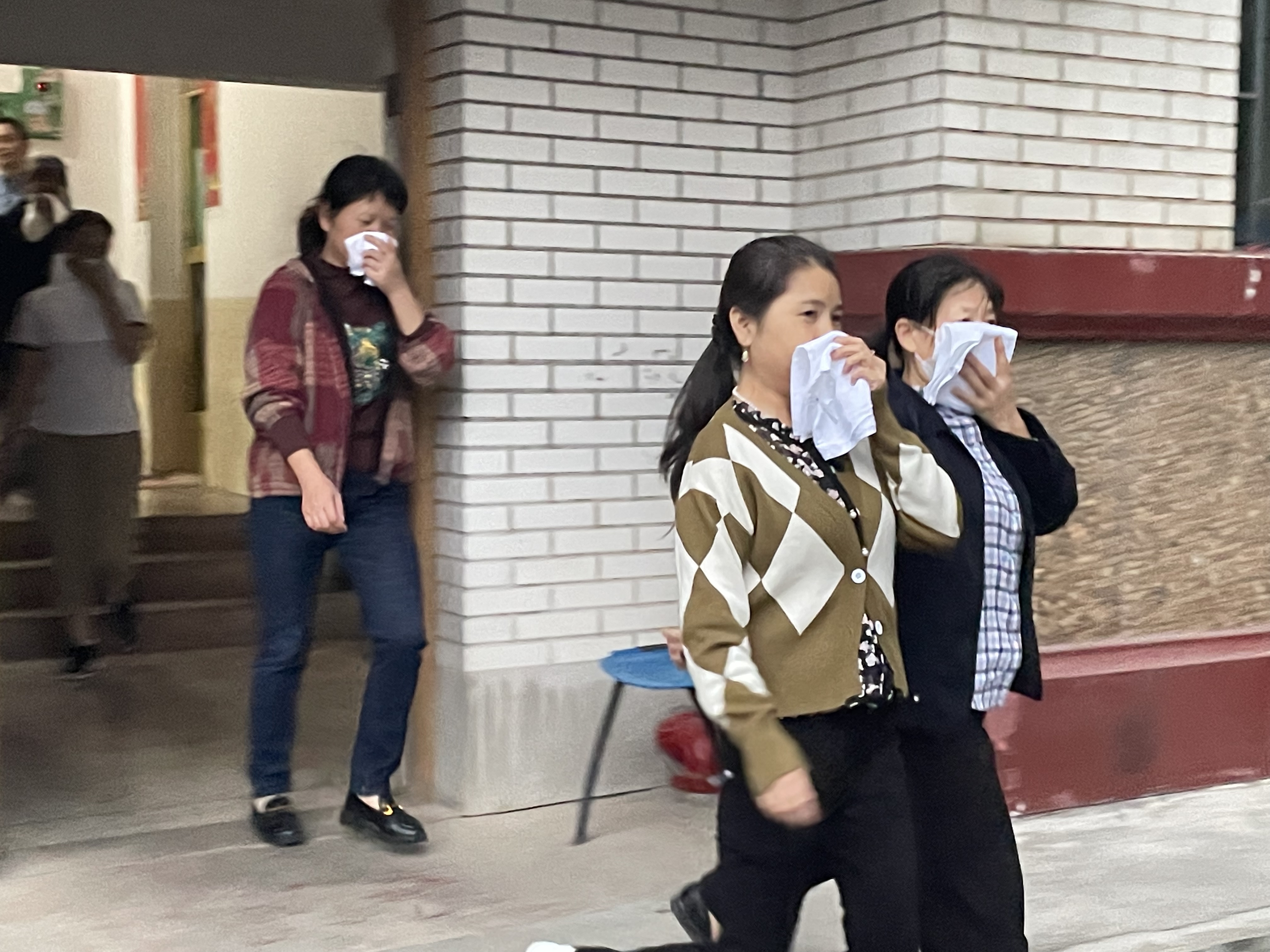 17时30分,全体参演人员开展紧急疏散演练。现场模拟员工宿舍某房间突然起火,楼层烟雾弥漫,一阵急促的火警警报声拉响。按照应急预案,全体人员弯着腰,用浸湿的毛巾捂住口鼻,迅速有序地沿着逃生路线,撤离到安全地带。在疏散过程中发现有1名人员被困,演练指挥长命令搜救组立即进行火场搜救。4名搜救人员佩戴消防呼吸器,携带强光手电、救护担架等搜救器具进入火场展开搜救,成功将1名被困人员救出。