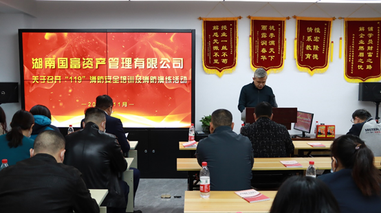 11月14日,国富公司围绕“抓消防安全,保高质量发展”主题,以组织消防安全知识培训、消防演练,发放消防安全资料等多种形式开展了“119”全国消防宣传月活动。公司班子成员及高管,各所属企业、本部各部门(办)、各区域管理部负责人、安全专干和客户代表等参加活动。