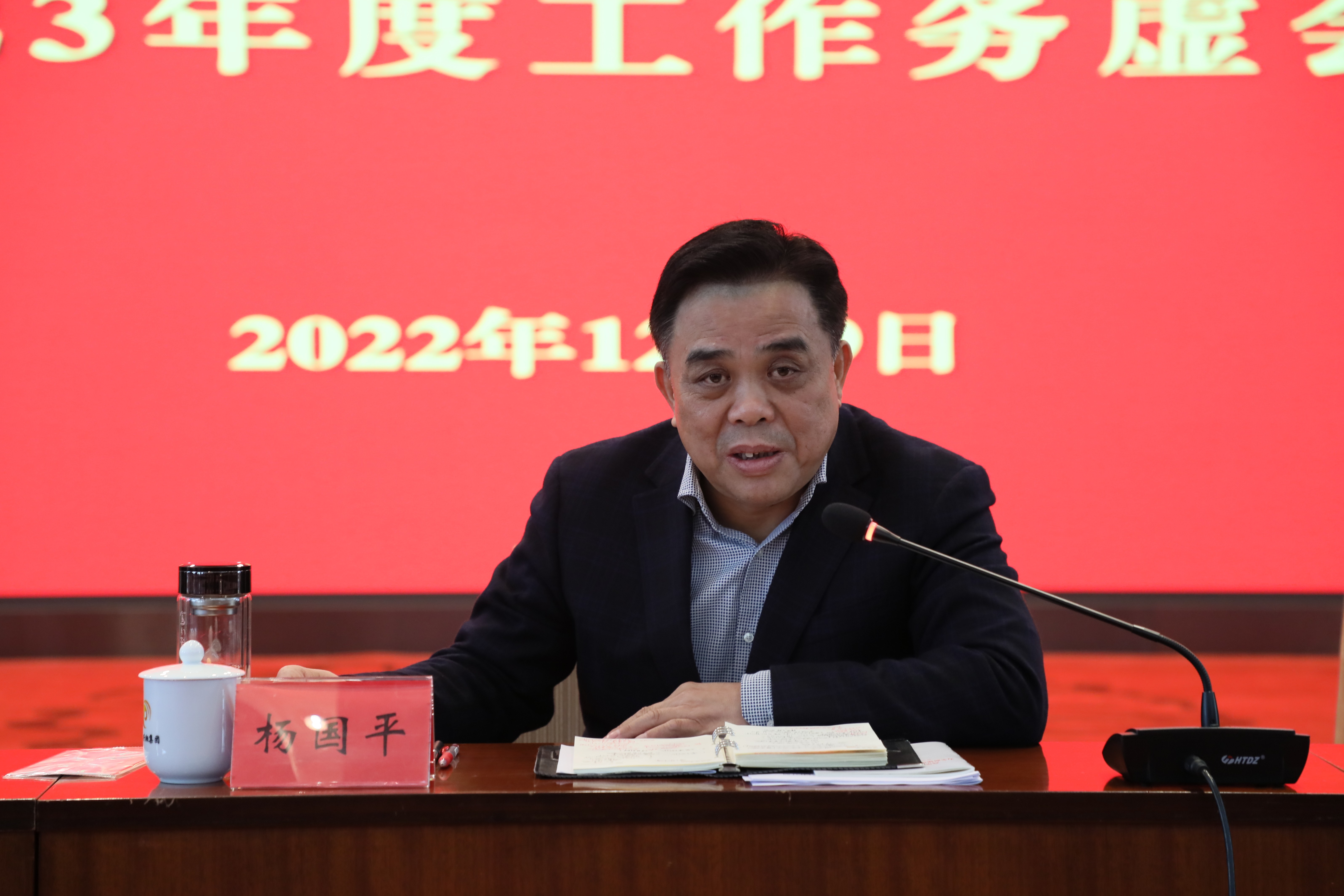 杨国平强调,2023年是贯彻落实党的二十大精神的开局之年,也是集团重组整合后新平台建设的起步之年,更是集团“十四五”规划实施的关键之年。一要聚焦集团“十四五”规划发展目标。以集团“十四五”战略规划为行动纲领和工作指南,加快战略目标实施,努力把宏伟蓝图变为美好现实。二要聚焦主业主责。做强做优股权管理及金融服务、国有资产管理与国企改革服务、科技成果转化与产业投资、国企智库“3+1”主业板块。三要聚焦深化改革、强化管理、持续创新。改革上要巩固提升改革成果,在改革重组、压层级减法人、内部专业化整合、深化三项制度改革等方面下更大功夫;管理上要遵循市场规律、遵循行业规律、遵循资本运营规律,在加强制度建设、强化制度执行、持续降本增效等方面不松劲;创新上要在治理能力和治理体系上持续创新、在打造原创技术策源地上持续创新、在管理上持续创新。四要聚焦打造国内一流国有资本运营平台。对标世界一流企业“16字标准”,加快国内一流国有资本运营平台建设,打造一批高新技术企业,打造一批“专精特新”小巨人企业,打造一批创新型平台企业。五要聚焦党对集团的全面领导。坚持党对集团的全面领导不动摇,持续深入推动党建与生产经营深度融合,以党建促发展,以发展强党建,坚决不搞“两张皮”,以高质量党建助推集团高质量发展。