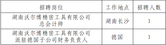 2.湖南沃尔博精密工具有限公司派驻德国子公司财务负责人(工作地点:德国)