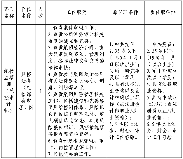 经研究,现对湖南省低空经济发展集团有限公司公开招聘公告中的风控法务(纪检综合审理)岗任职条件进行变更(详见下表)。该岗位报名时间延长至2025年3月4日17:00,其他信息不变。