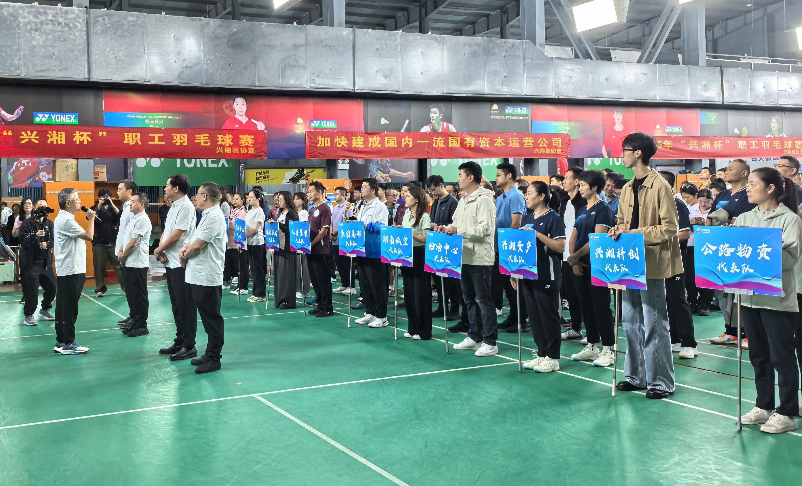 10月18日,2025年“兴湘杯”职工运动会羽毛球赛与团体拔河赛开赛。上午8时30分,开幕式在庄严的国歌声中启幕,集团党委书记、董事长贺柳宣布开幕。